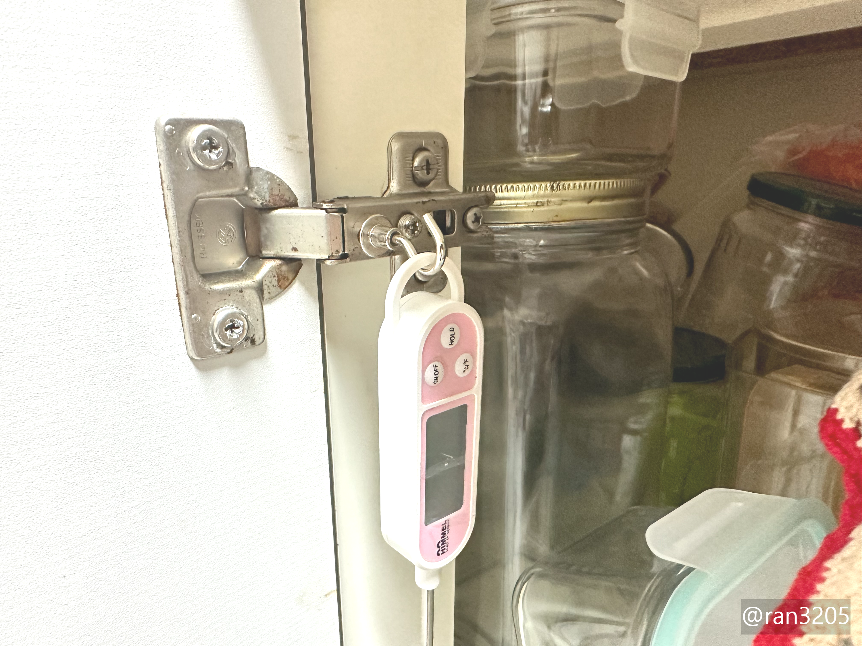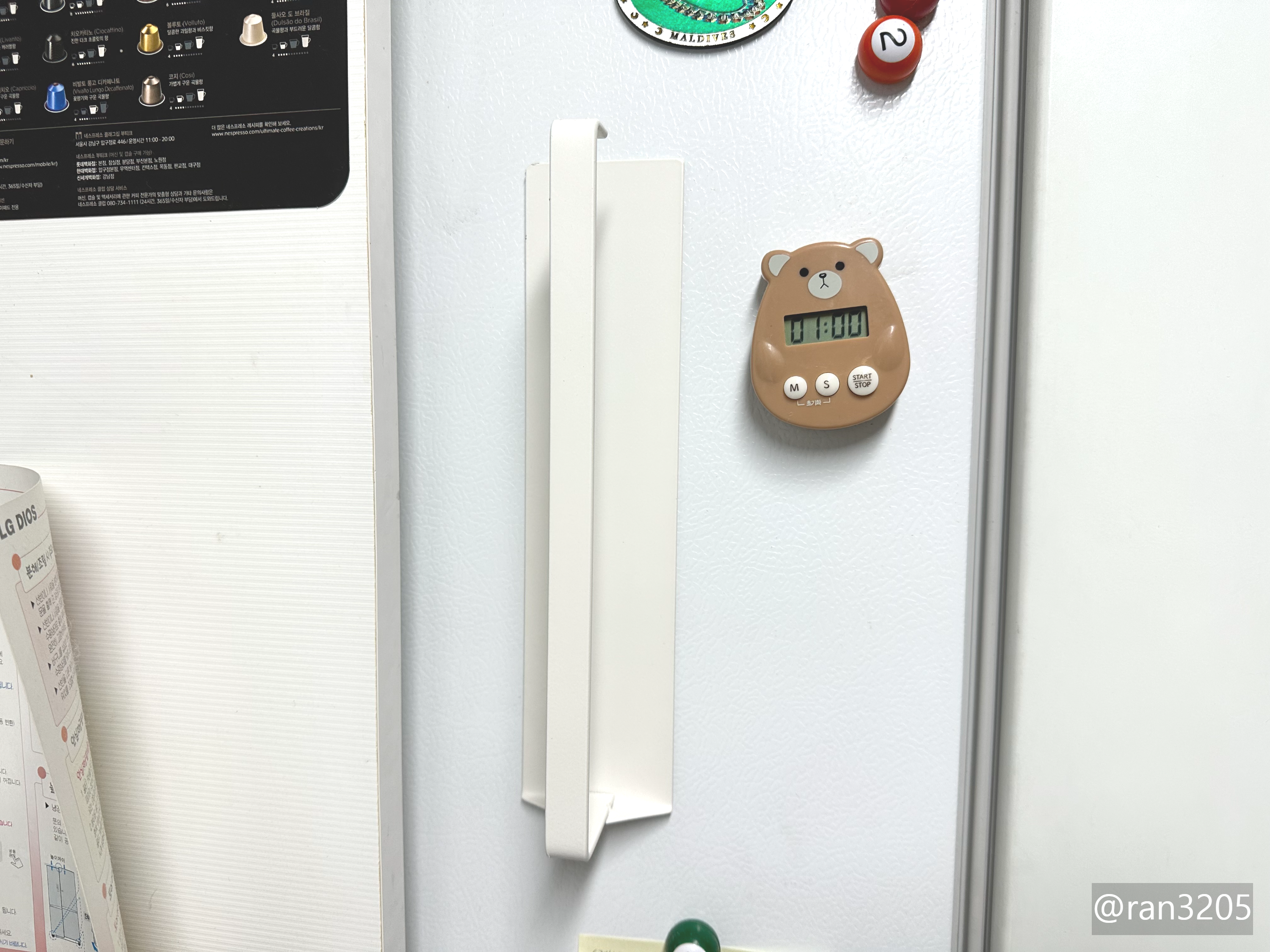 나는 온도계를 걸어두는 용도로 사용해 보았다. 평소에 핸드드립 커피를 자주 내려먹어서, 온도계를 자주 사용하는데, 자석 후크를 이용해서 걸어두니 찾기 쉽고 편리해졌다.