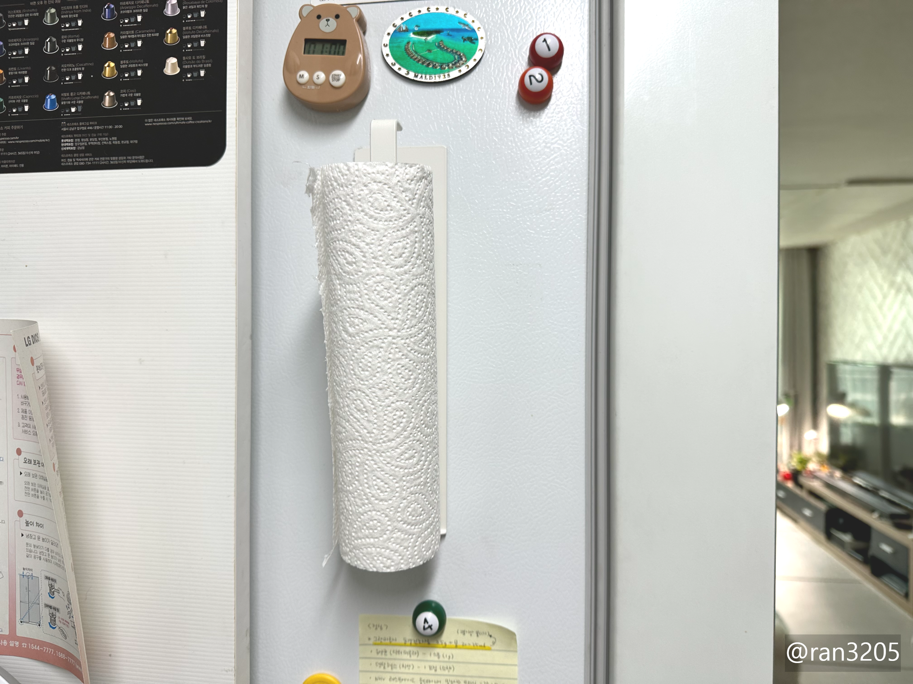 냉장고 옆면에 부착한 모습이다. 사실 여유만 있다면 가로로 부착을 해서 사용하는 것이 키친타올이 펄럭이지 않아서 더 좋을 것 같기는 한데, 나는 걸리적거리거나 눈에 띄는 것이 싫어서 잘 안 보이는 냉장고 옆면에 세로로 부착을 해 줬다. 현재까지 사용 중인데 툭 떨어지거나 하지 않아서 만족스럽다.