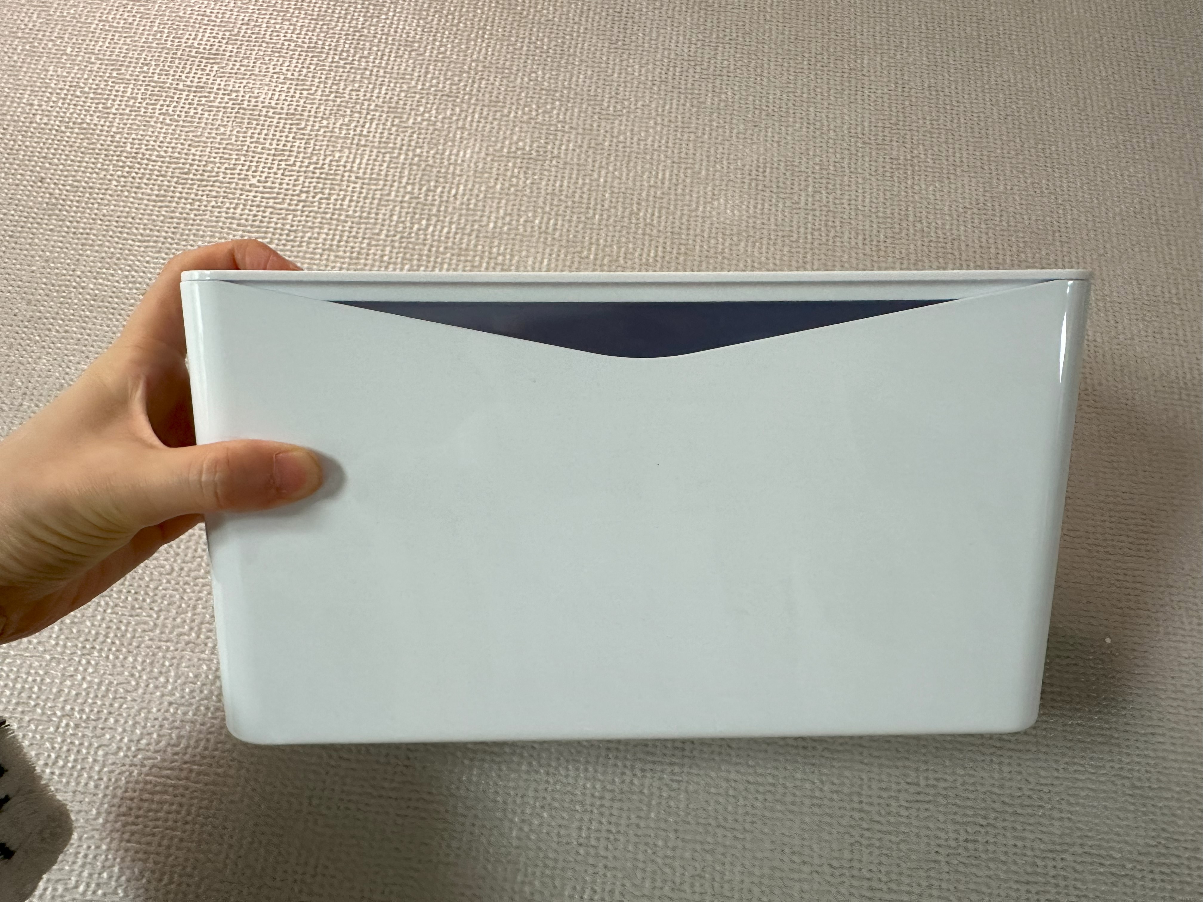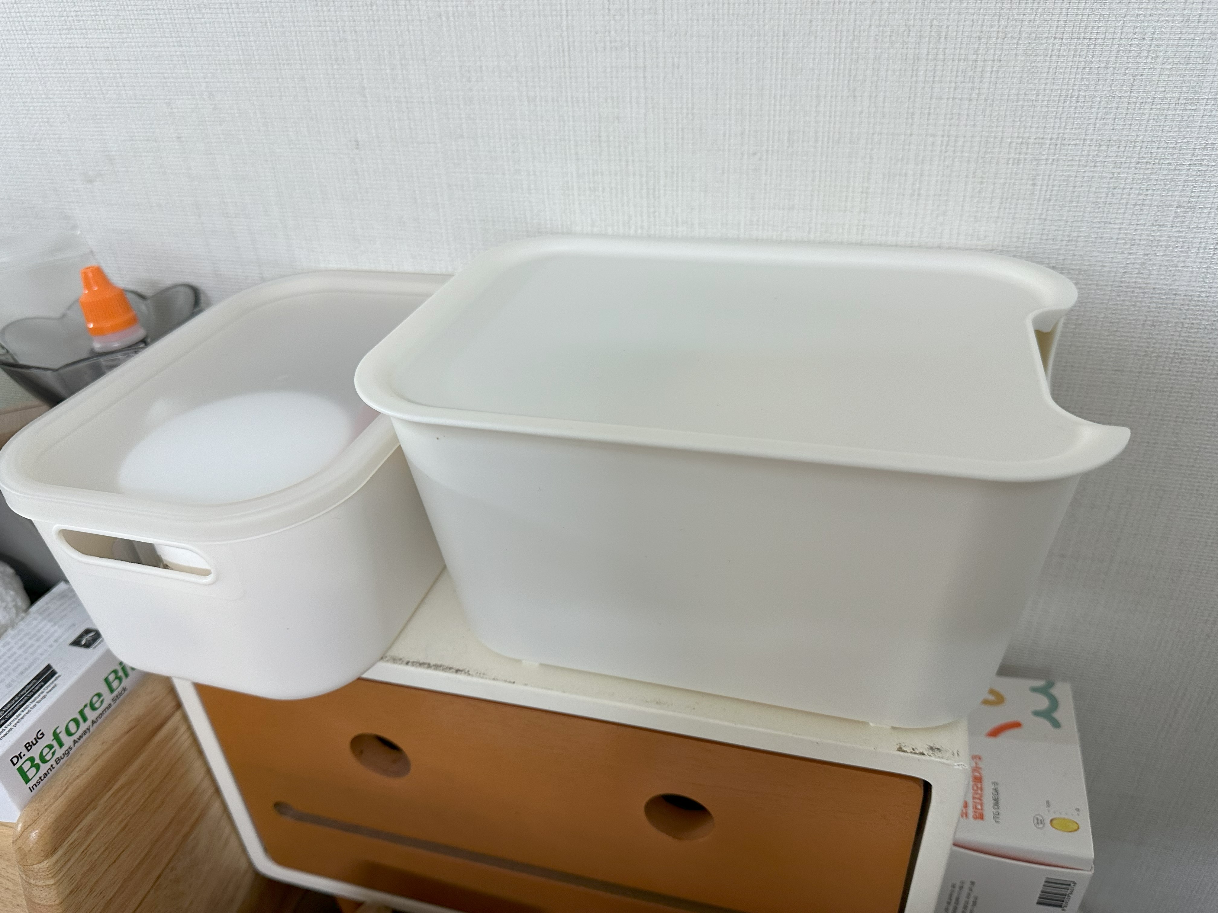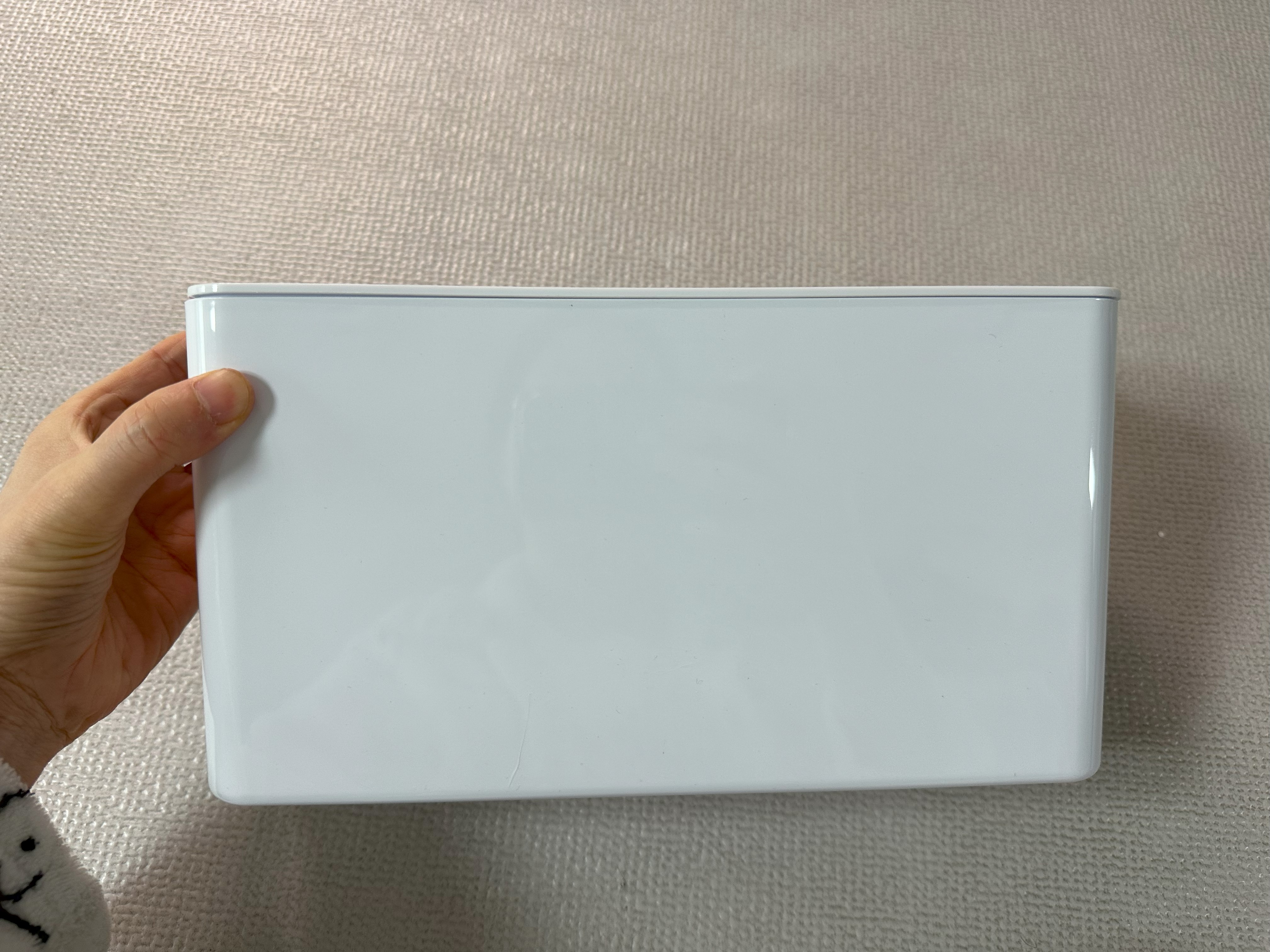 나는 자리를 많이 차지하지 않는 뚜껑 있는 수납함이 필요해서 소형을 구매했다.