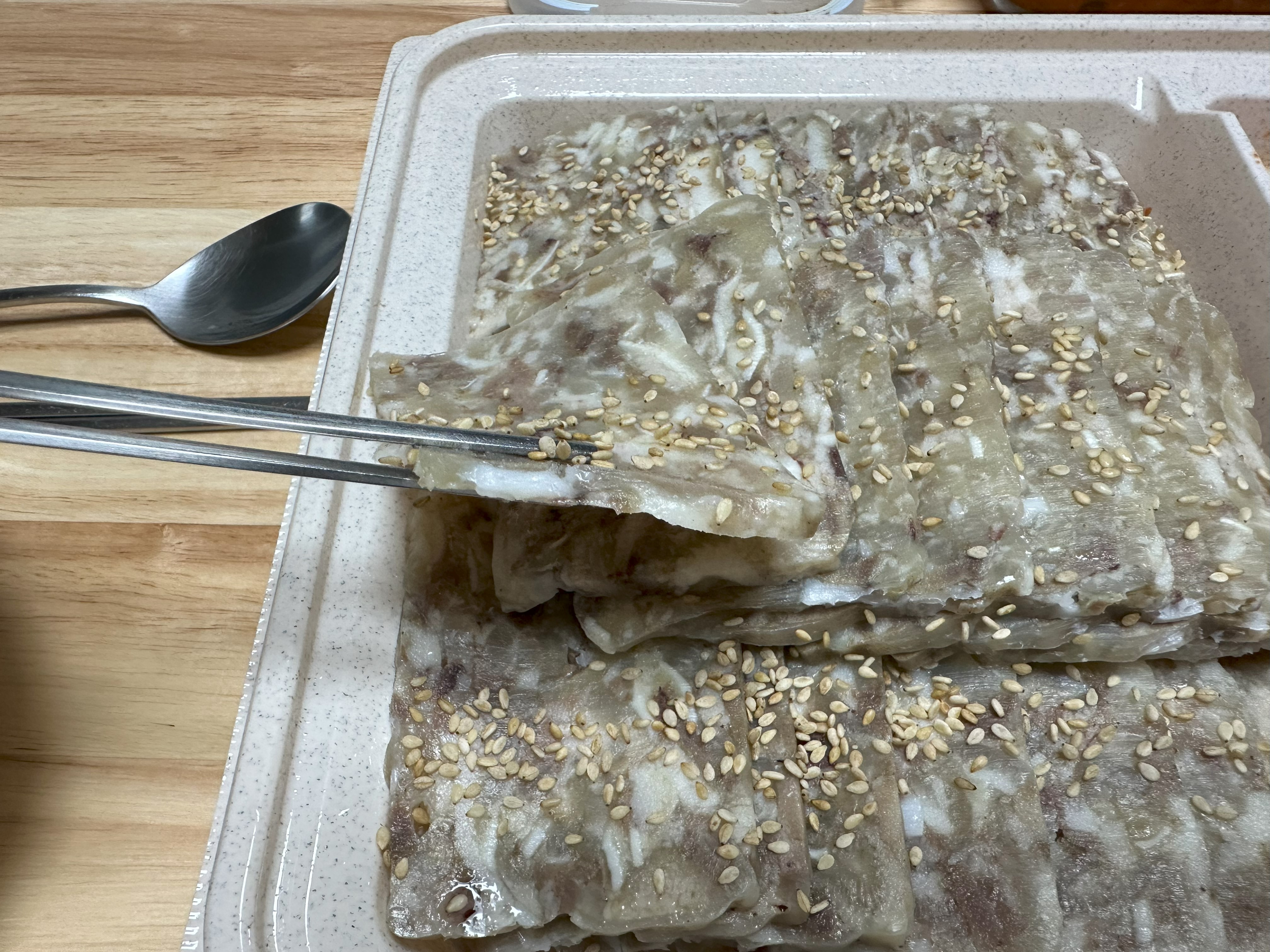 편육은 원래 식감이 꼬들하지만 이 편육은 부드러운 편에 속했고 일정한 크기와 두께로 슬라이스 되어 있었다.