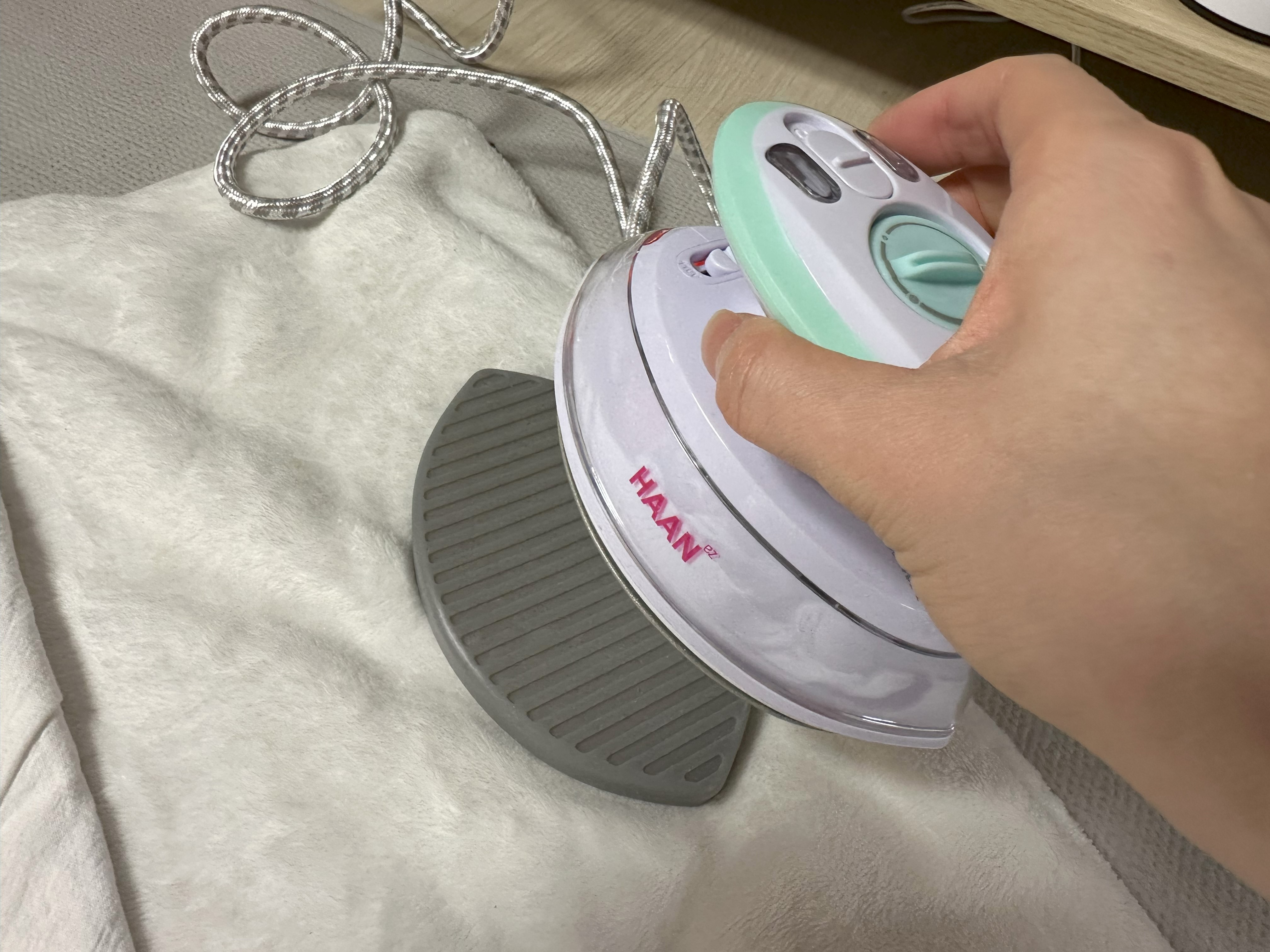 미니 다리미이지만 스팀이 가능한 다리미라 다림질과 살균이 가능하다.