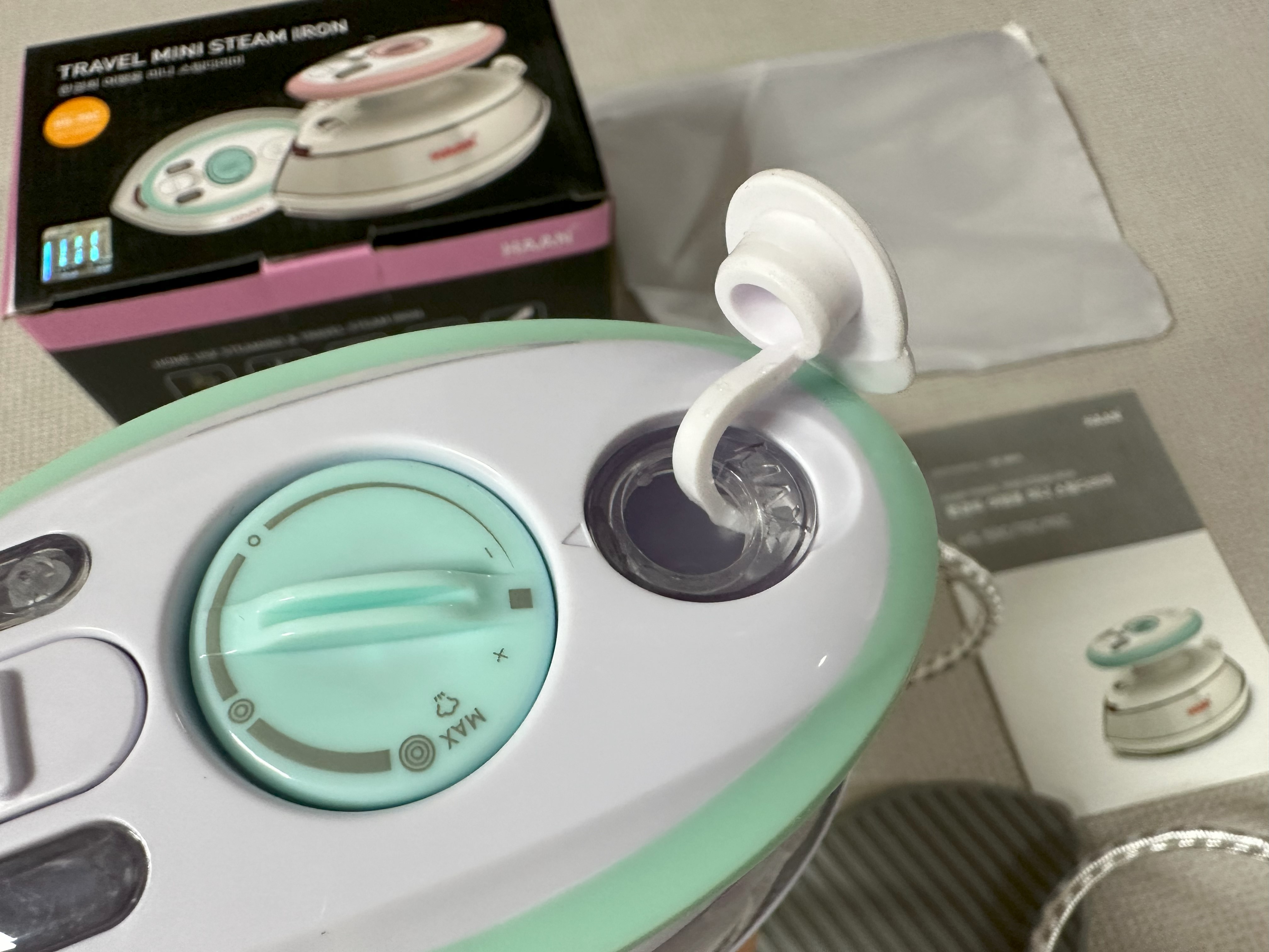 미니 다리미라 엄청 작고 귀엽다. 색상은 핑크, 민트 두 가지인데 나는 민트를 선택했다.