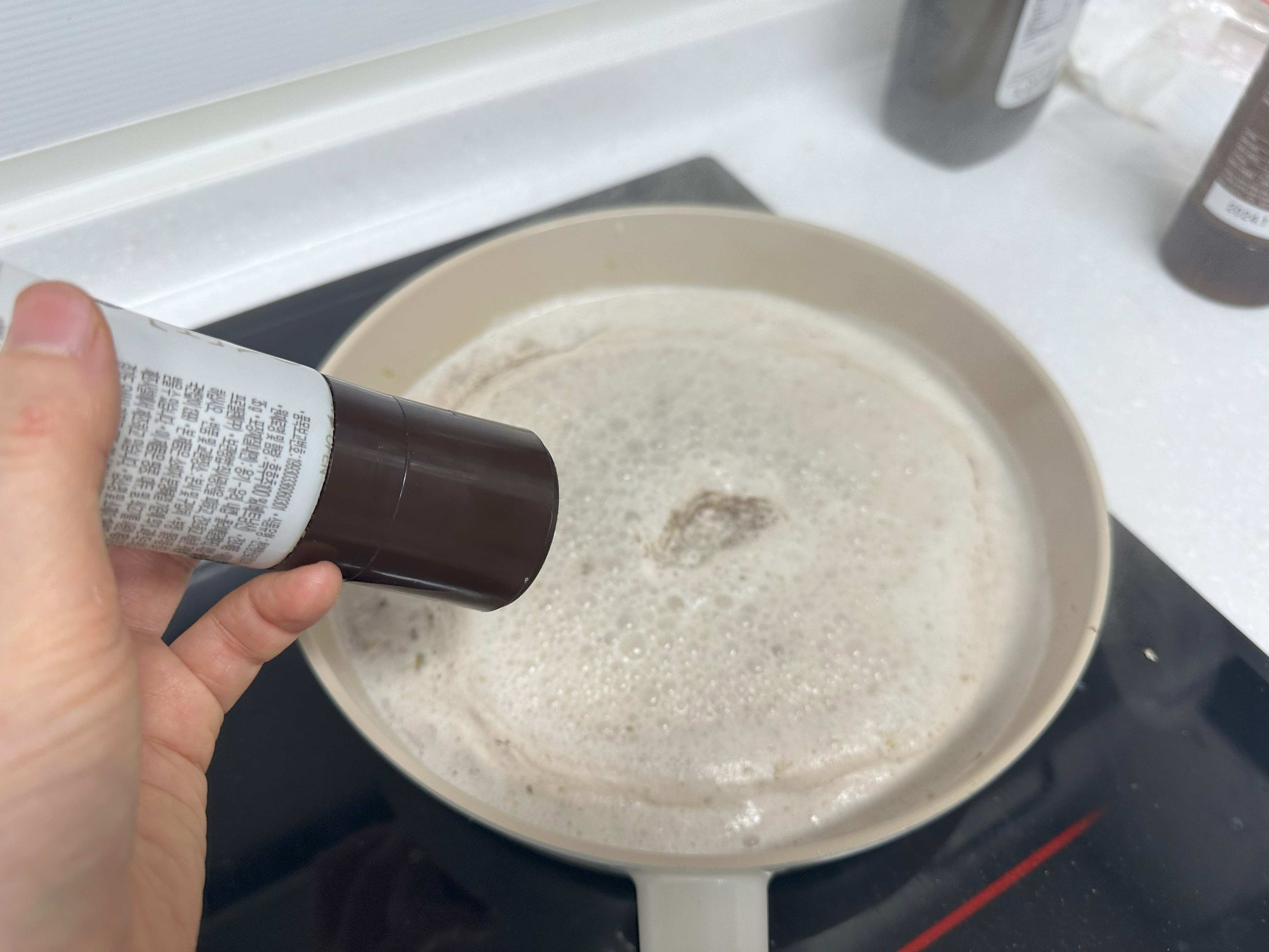 끓여서 살짝 졸이는 동안 중간중간 눌러붙지 않게 잘 저어준다.