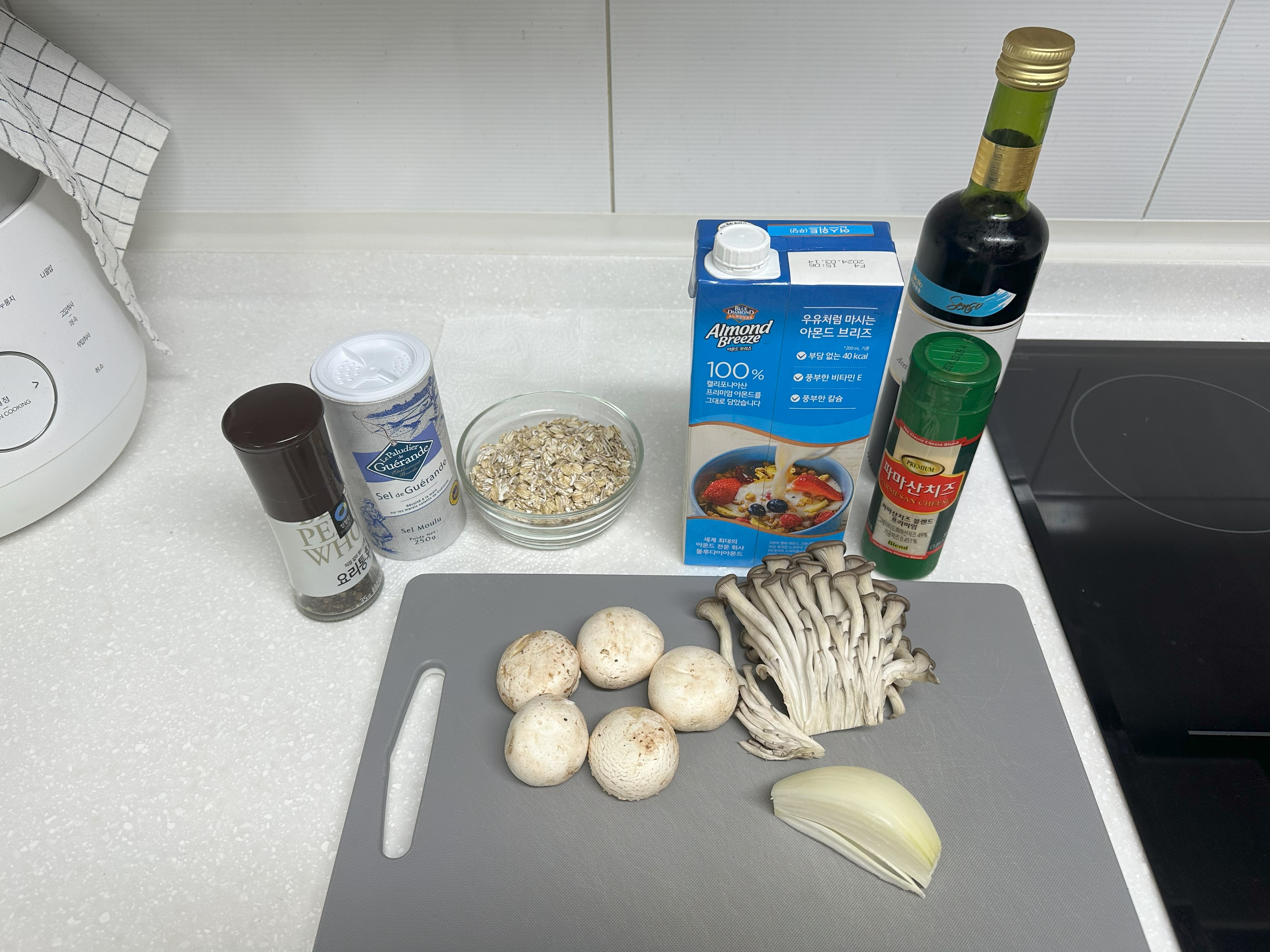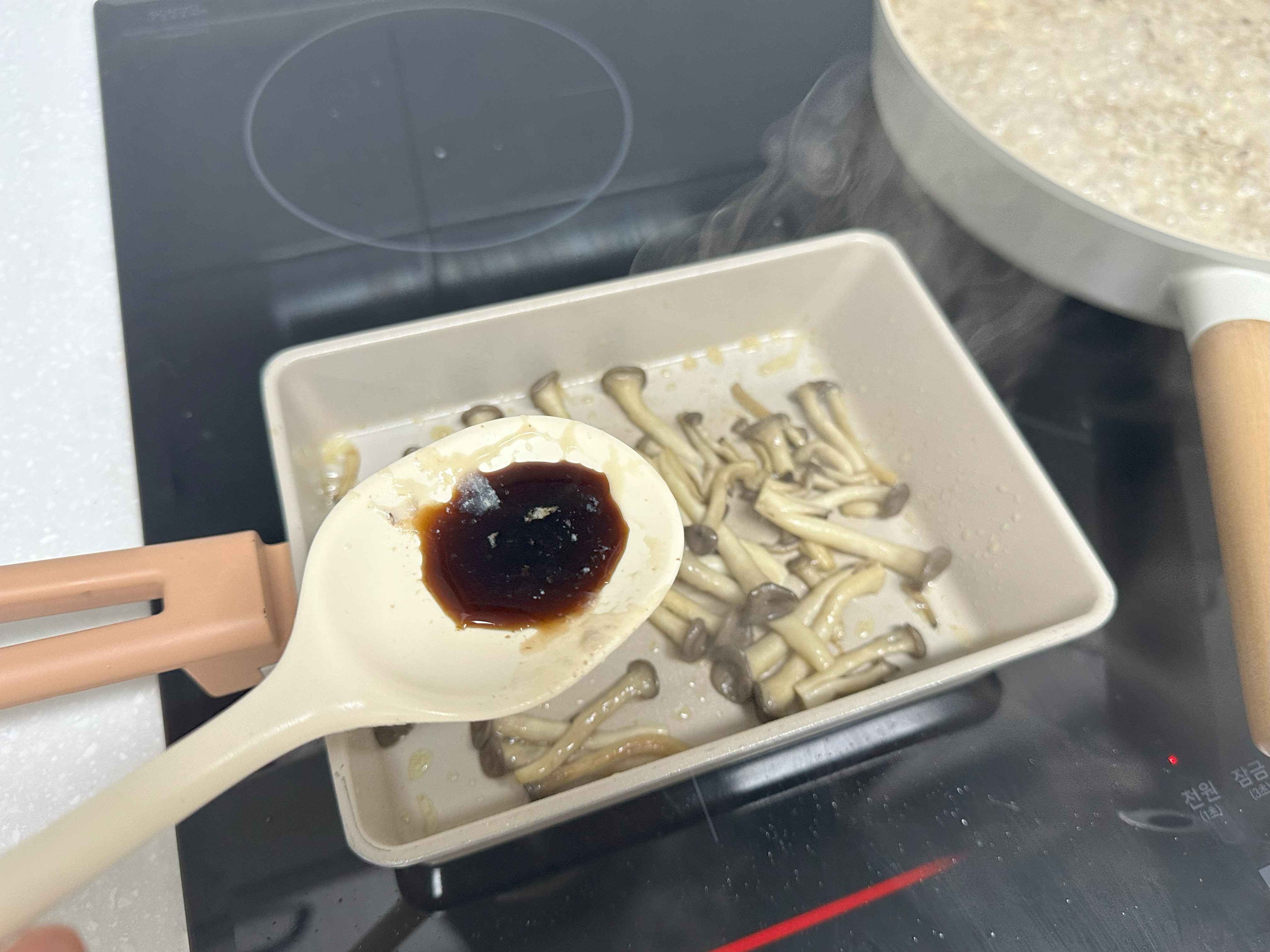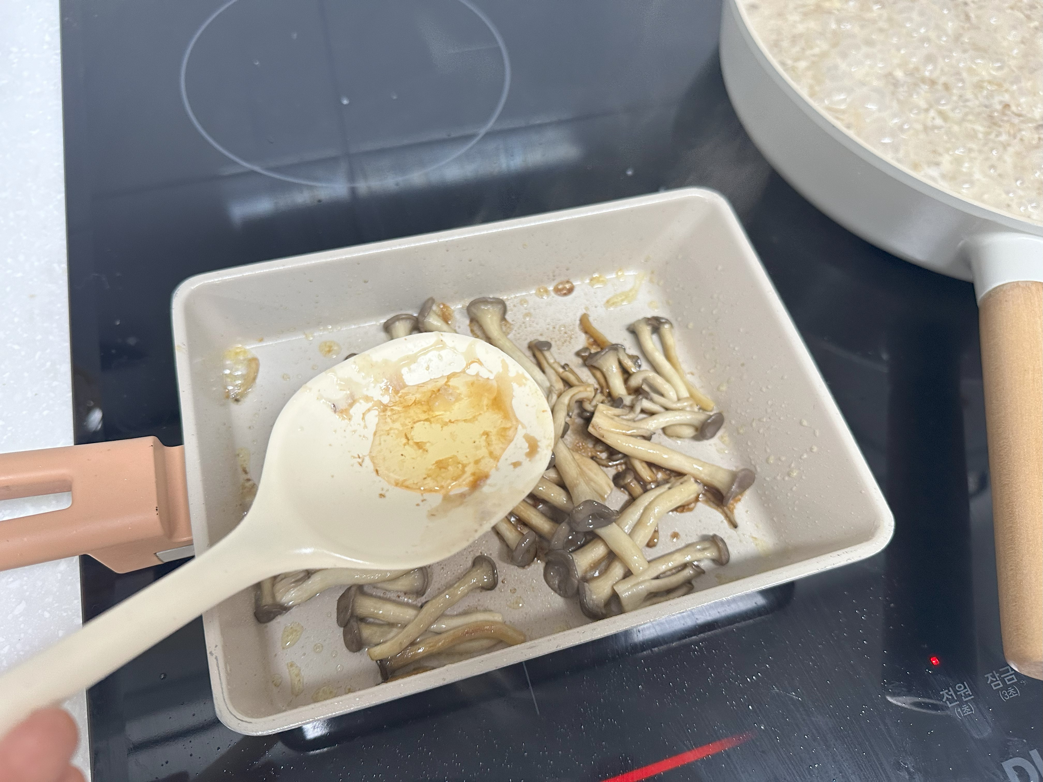 진서연 레시피에서는 고명으로 참송이버섯을 이용했는데, 더 맛있을 것 같지만 집에 준비되어 있지 않아서 느타리를 이용했는데 느타리버섯도 꽤 맛있었다.
