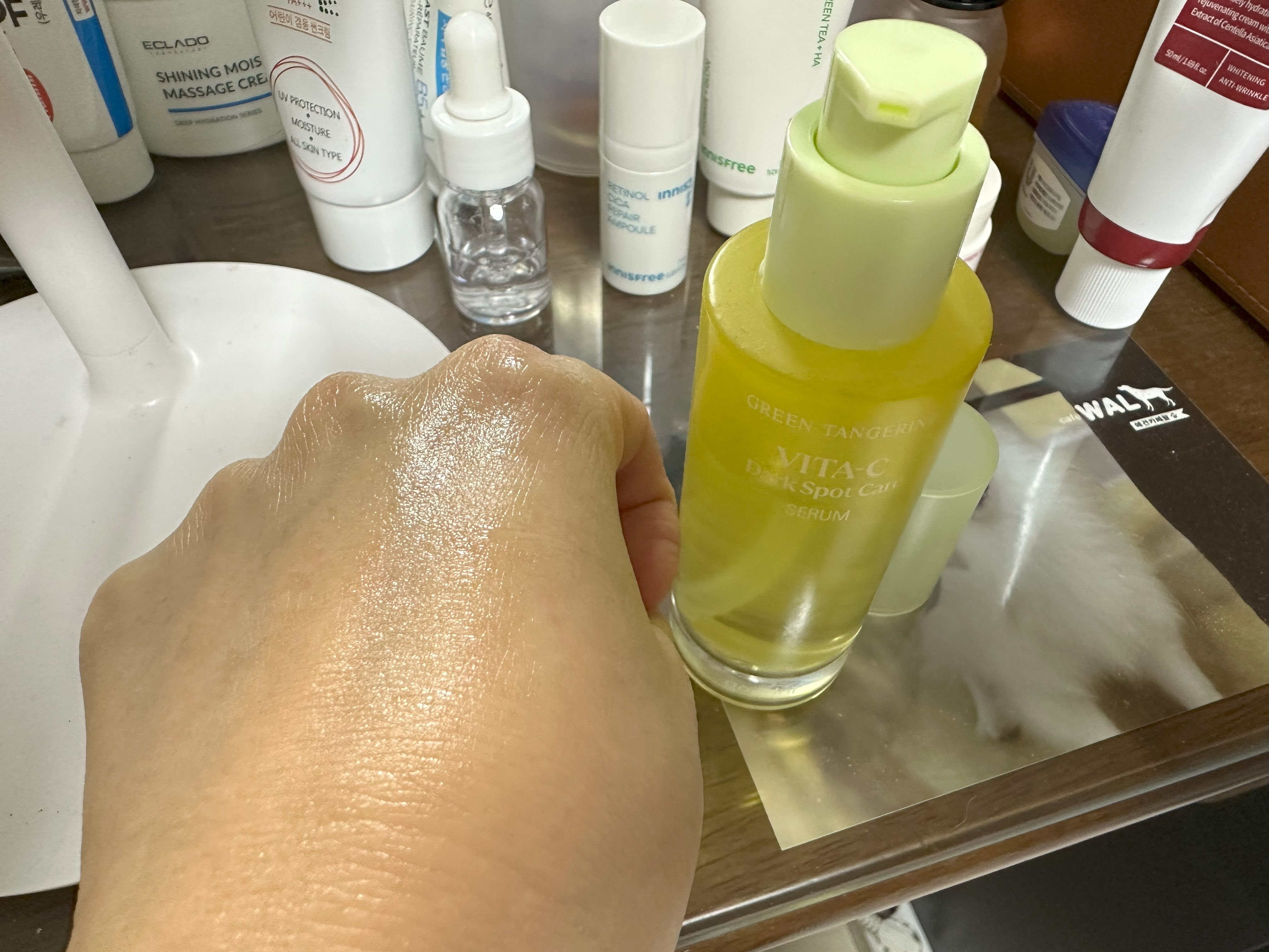탄제린추출물에는 비타민C가 많이 함유되어 있고, 나이아신아마이드 성분도 잡티 케어와 미백에 도움을 주는 성분인데, 사실 민감성인 내 피부에 비타민C나 나이아신아마이드 성분이 많이 들어있는 제품을 사용하면 피부가 따끔따끔하면서 간질간질할 때가 많은데, 이 제품은 민감성인 내 피부에도 자극이 없어서 미백 기능성 제품 치고는 순한 편이라는 생각이 들었다. (피부 자극 테스트 완료하여 민감한 피부에 사용 가능하다고 함)