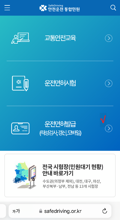 2. 도로교통공단 안전운전 통합민원 사이트 접속 (PC와 모바일 둘 다 가능)