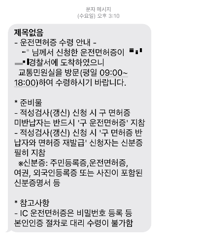 5. 내가 정한 기관에서 면허증 수령 안내 문자 받음