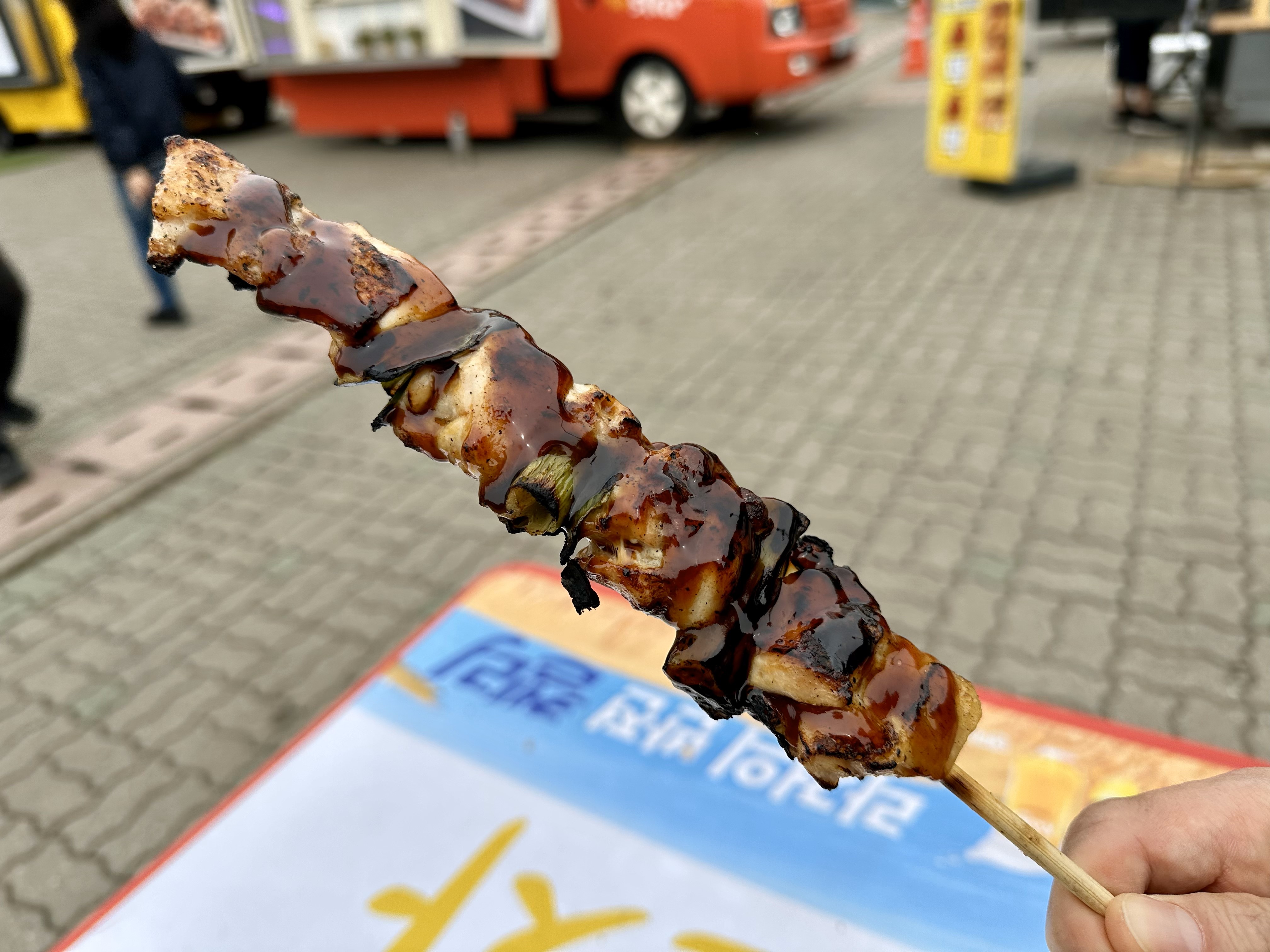 우리는 숯불향의 유혹을 떨치지 못하고 명품닭꼬치를 사 먹고야 말았다.