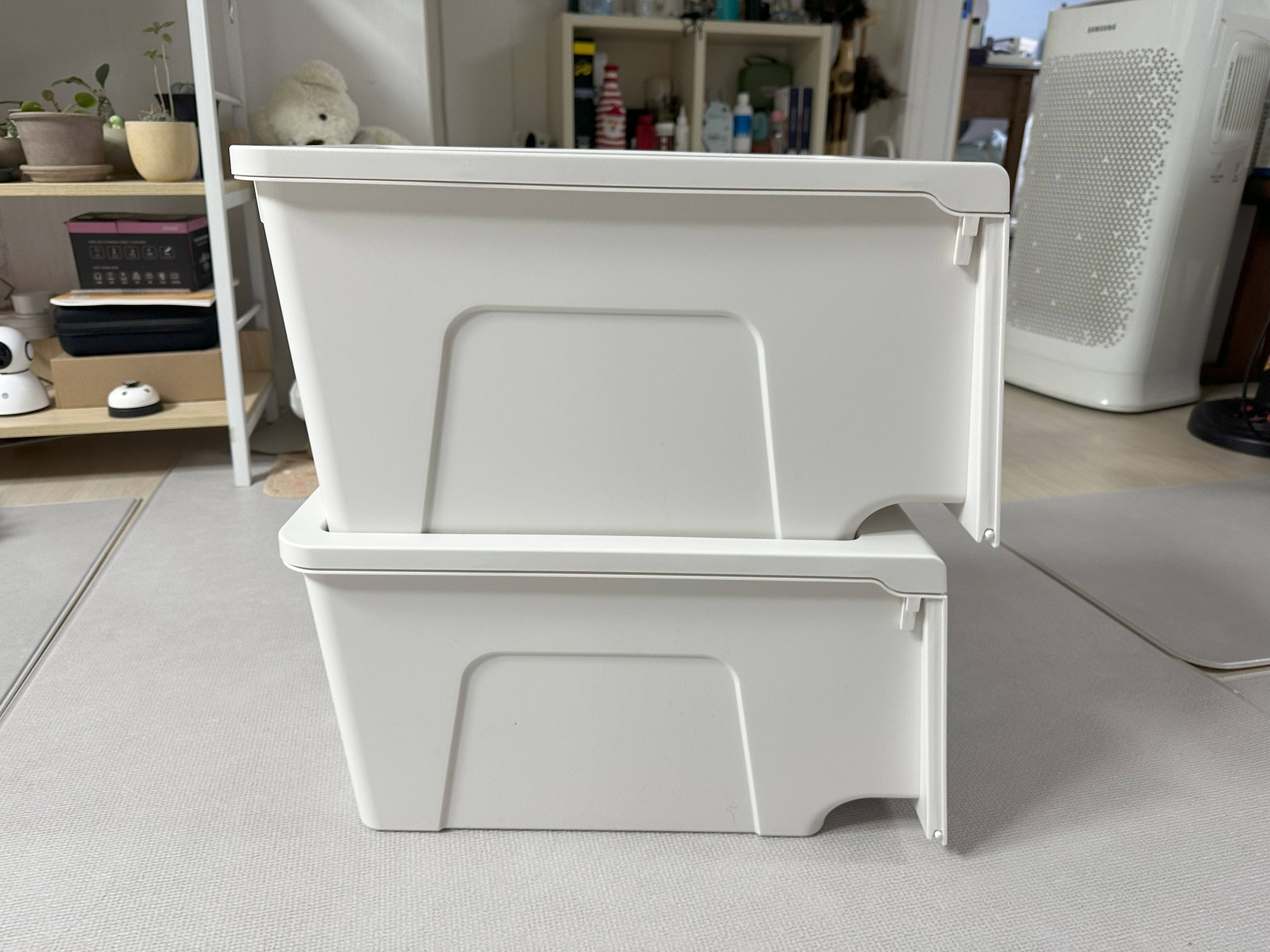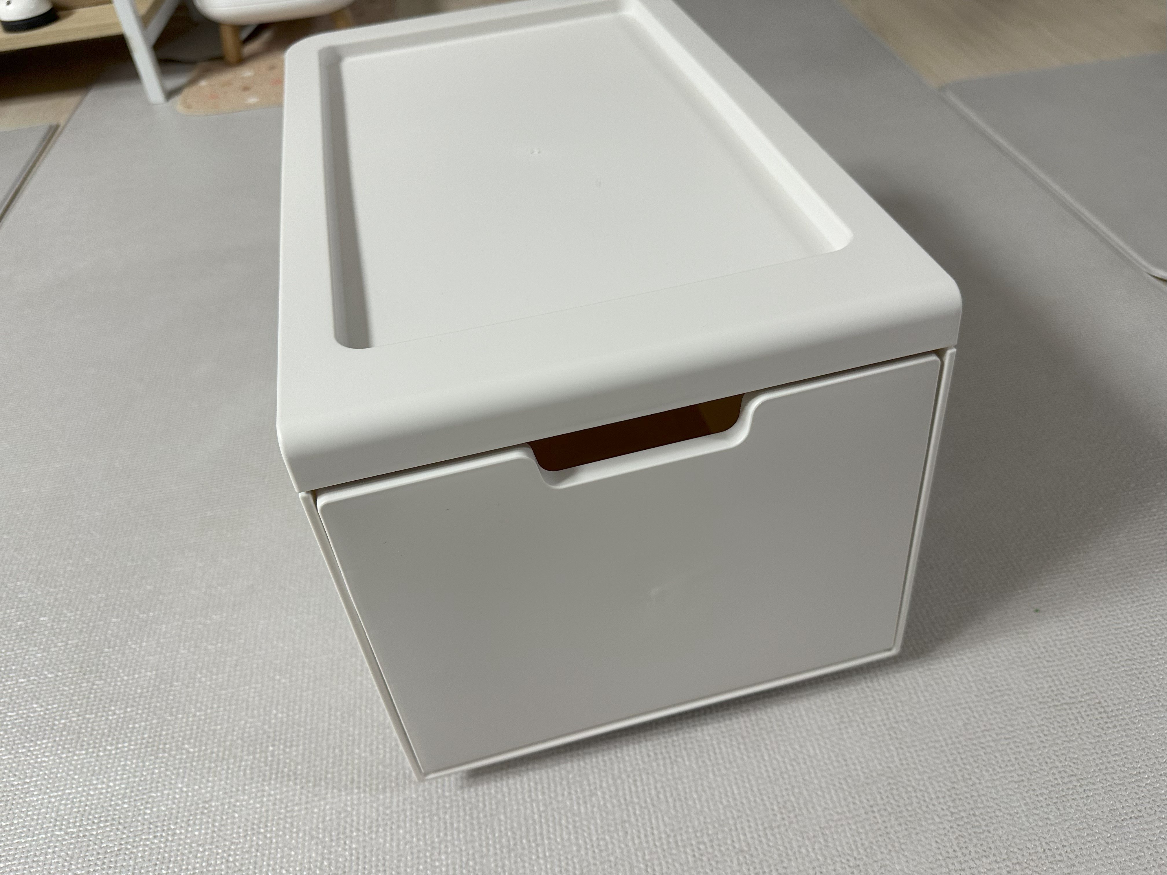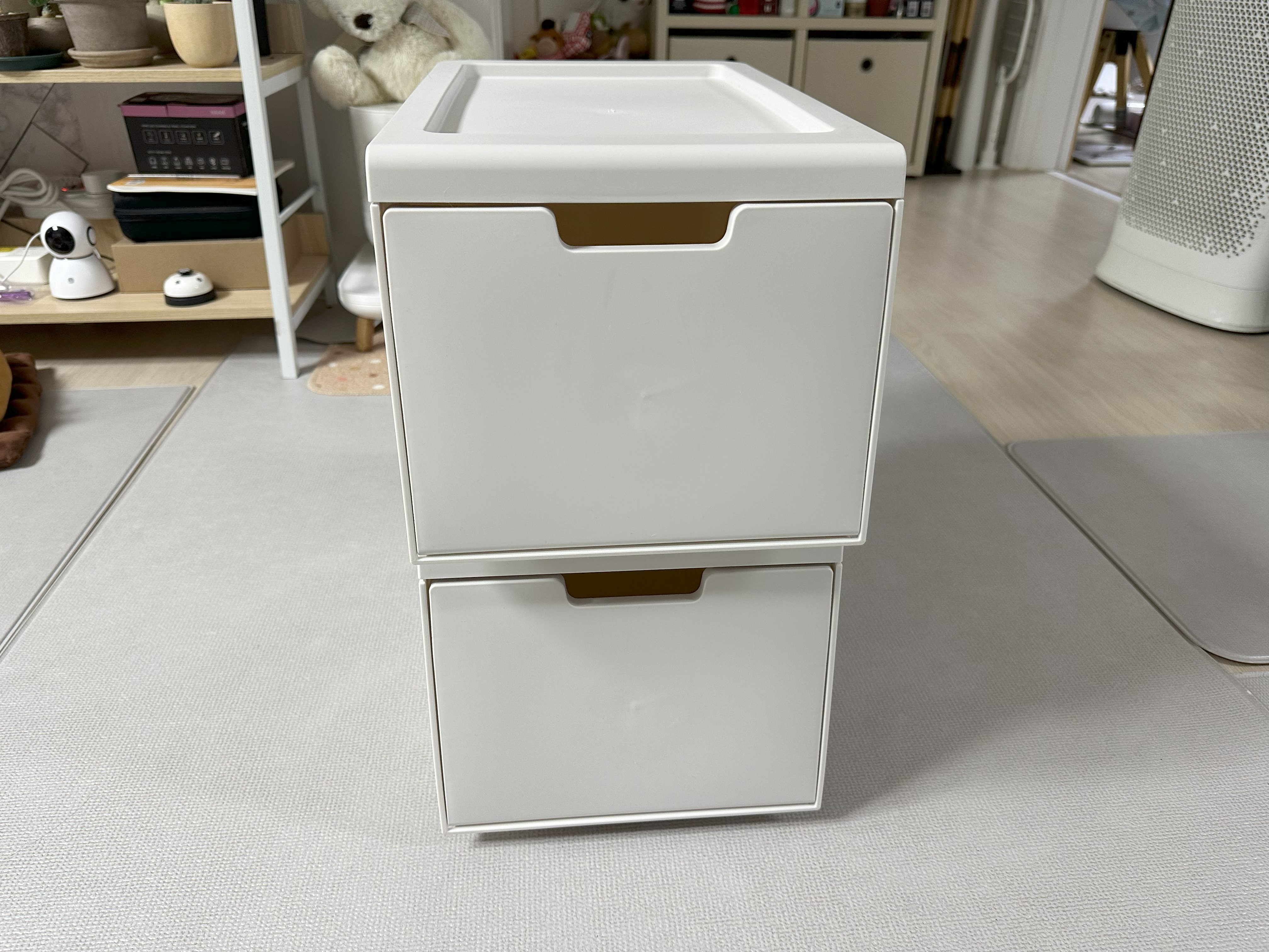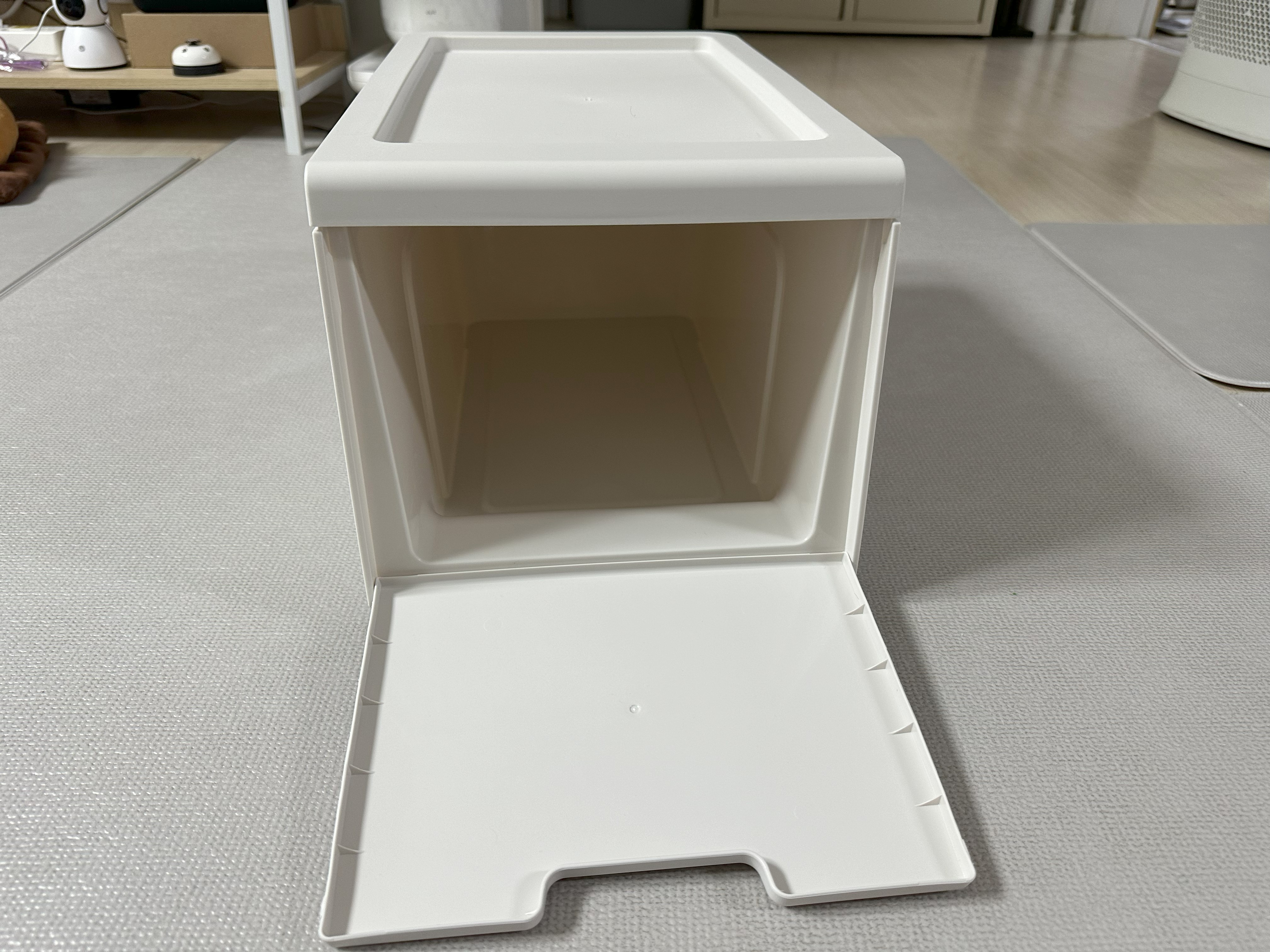 무겁고 튼튼한 수납장도 좋지만 나처럼 간편하고 가벼운 틈새 수납장이 필요한 경우, 이 수납함을 적층하는 식으로 사용하면 깔끔하고 간편하게 수납할 수 있을 것 같아서 추천하고 싶다.