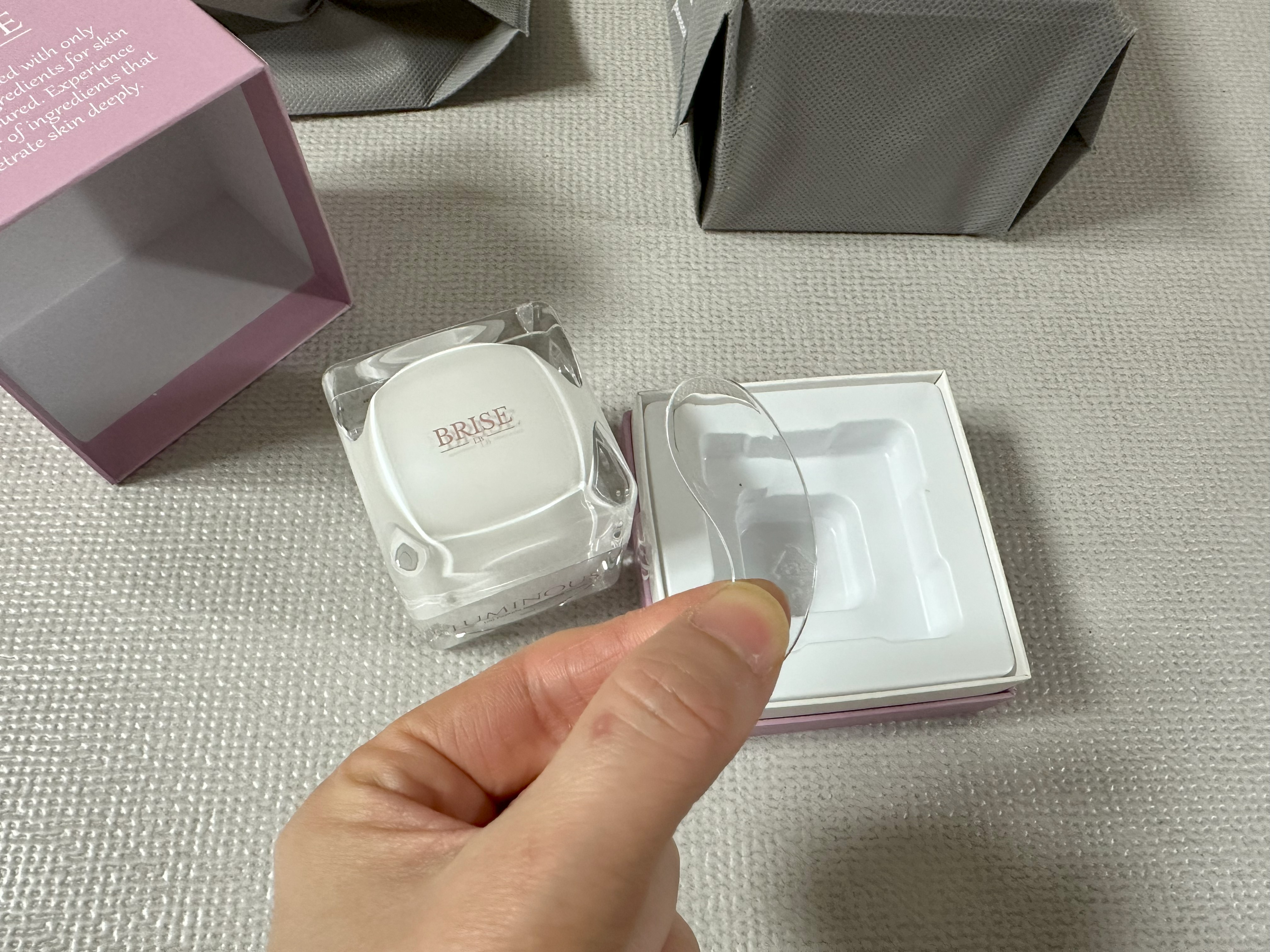고급스러운 투명 케이스에 핑크 포인트 박스, 그리고 파우치까지! 선물용으로도 손색없는 패키지였다.