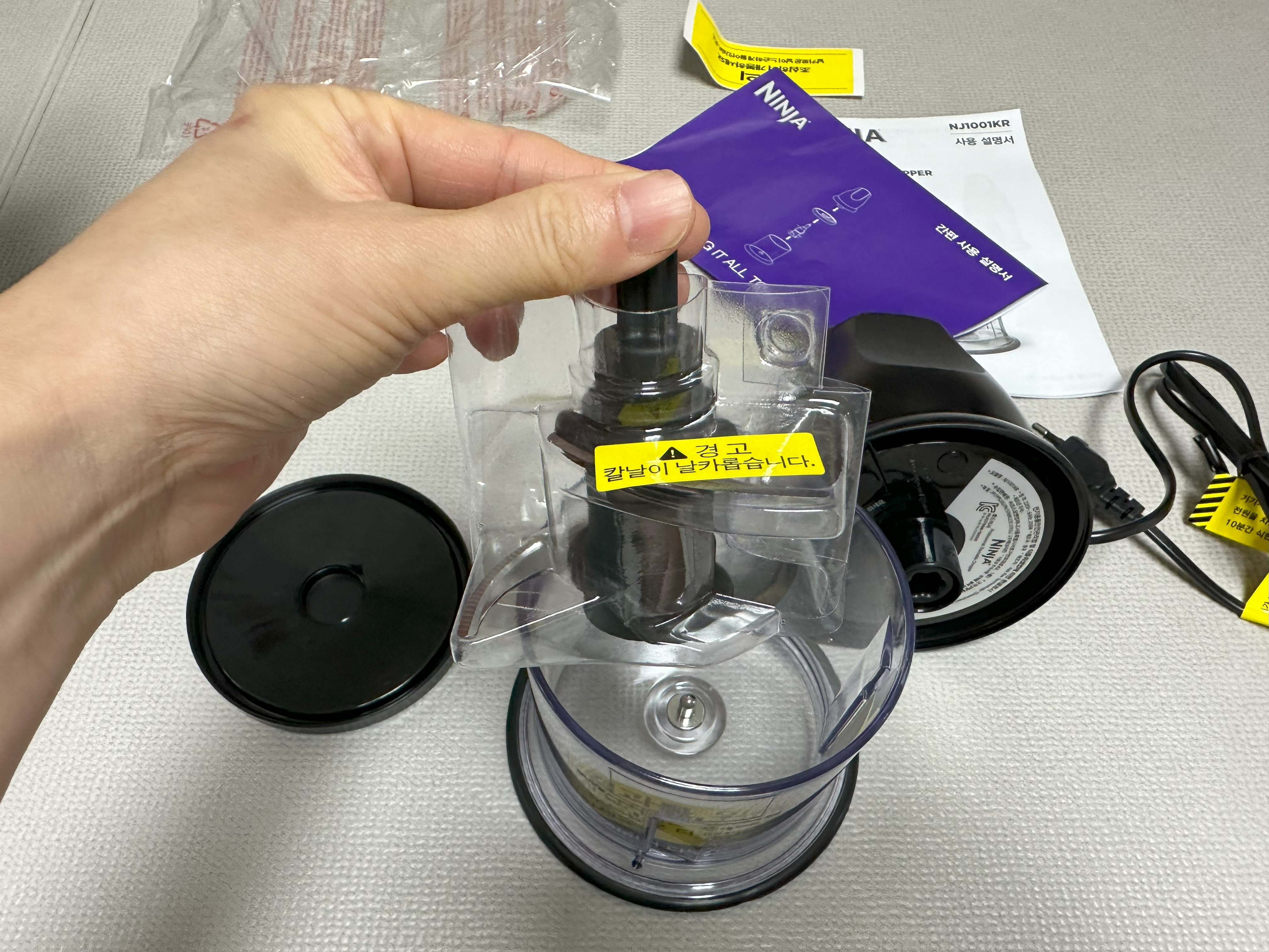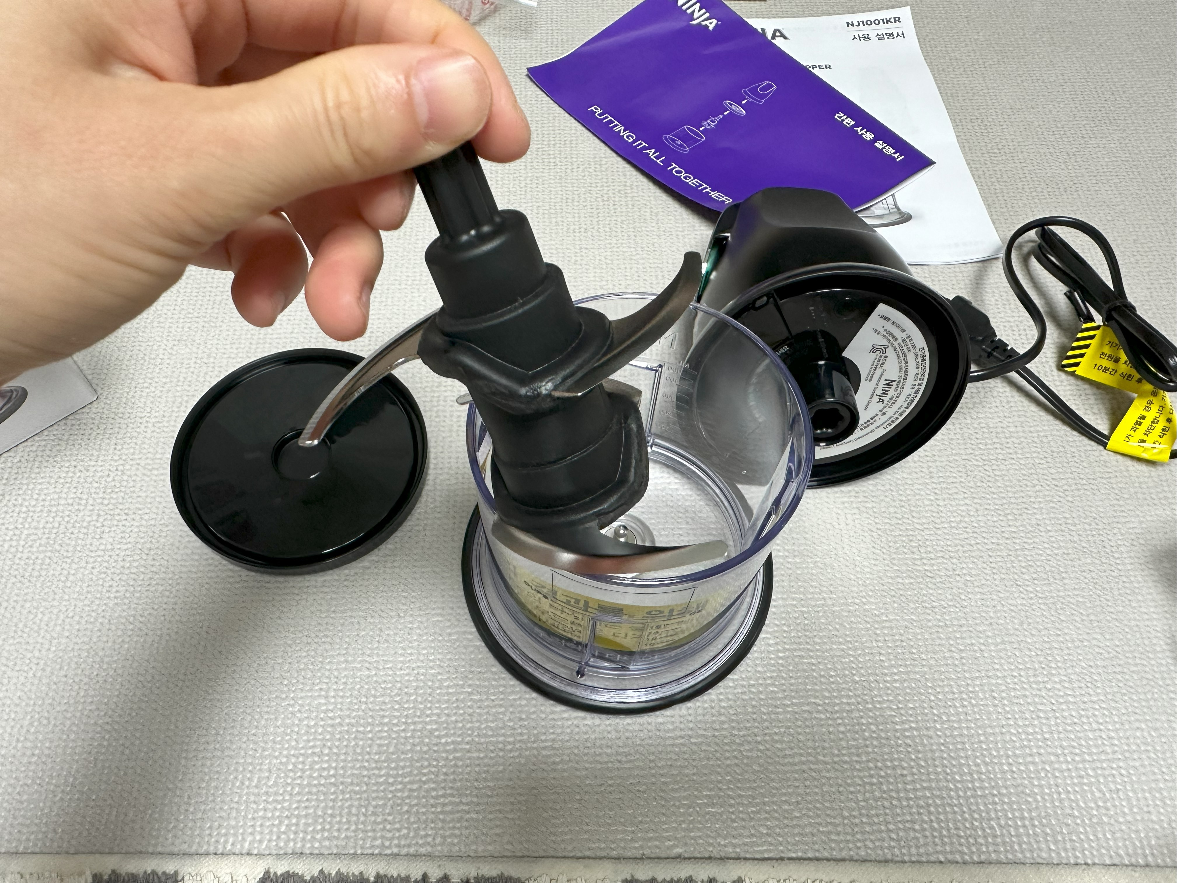 구성은 본체, 칼날이 장착된 다지기 용기, 뚜껑으로 단순하지만 직관적이고 편리한 편이다.