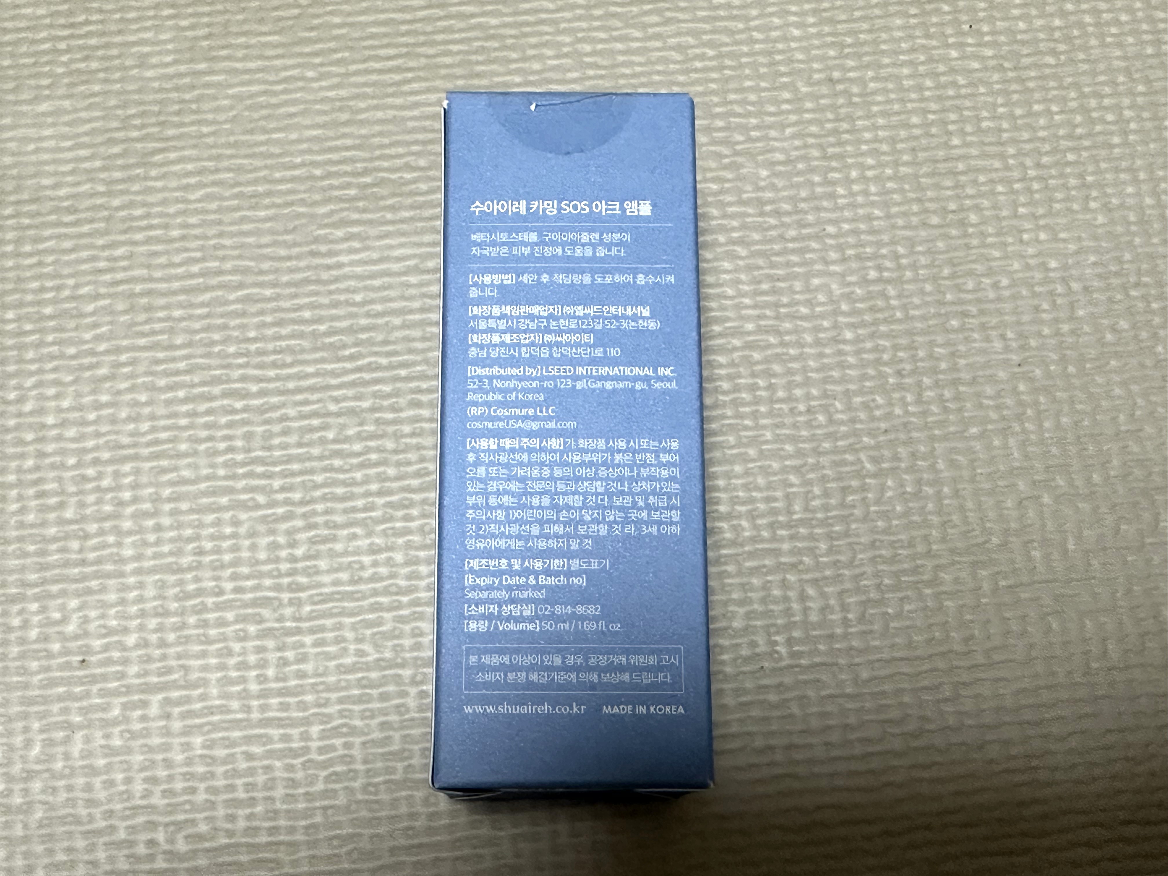 요즘 피부 컨디션이 들쑥날쑥해서 생전 나지도 않던 콧등 부위에 빨갛고 아픈 트러블이 올라오지 않나, 이마 쪽에 좁쌀이 올라올 때가 있다. 나는 건성 + 예민 피부라 트러블 앰플을 잘못 쓰면 오히려 더 건조해지거나 따가운 경우가 많아서 성분이 순한 진정 앰플 위주로 찾다가 인스타그램 인플루언서가 극찬을 하길래 수아이레 카밍 SOS 아크 앰플을 내돈내산으로 사서 사용해 보게 되었다.